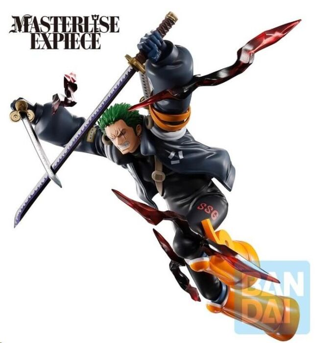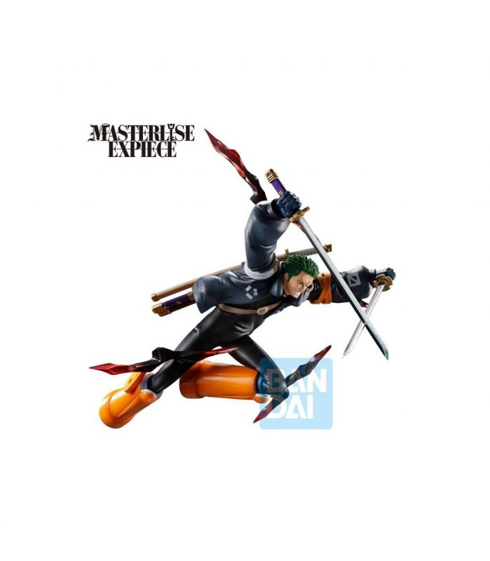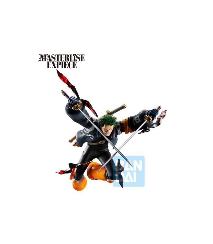 Esta figura de Roronoa Zoro de la colección Ichibansho Masterlise Expiece lo presenta en plena acción, desatando toda su energía en un ataque feroz. Con sus espadas desenvainadas y su expresión concentrada, refleja a la perfección la fuerza y determinación del espadachín de los Sombrero de Paja. Los efectos de energía y el dinamismo de la pose transmiten la intensidad de la batalla.