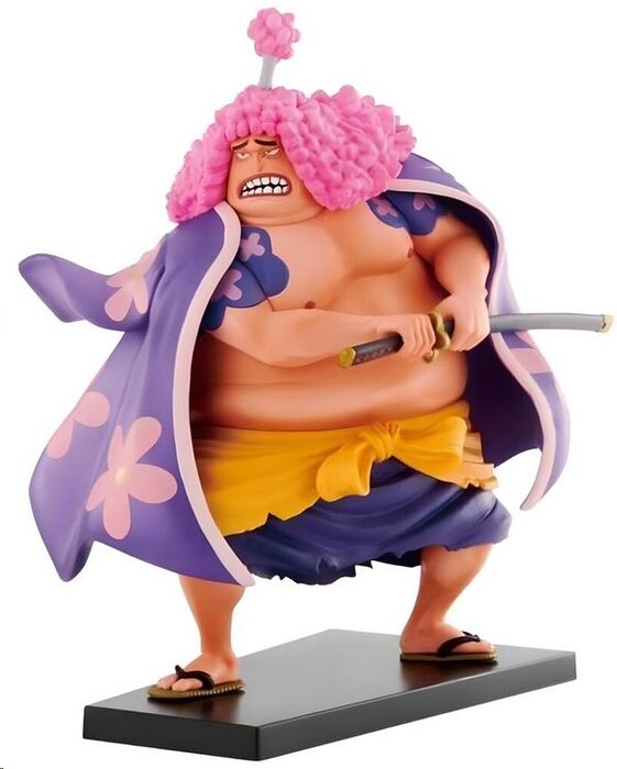 Con una altura aproximada de 15 cm, esta escultura en PVC de alta calidad captura su armadura ornamentada, la espada imponente y una expresión que transmite la inquebrantable devoción por su causa en el arco de Wano.