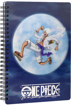 La energía desatada del Gear 5 se plasma en esta libreta con efecto 3D, donde su protagonista aparece en una de sus transformaciones más icónicas y llenas de personalidad. El diseño transmite ese estilo desenfadado y libre que caracteriza esta forma, con un acabado visual que no pasa desapercibido.