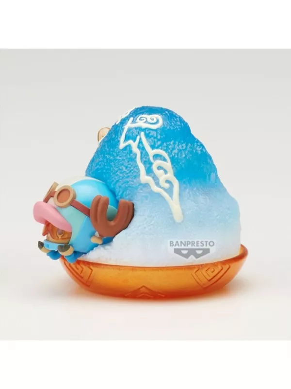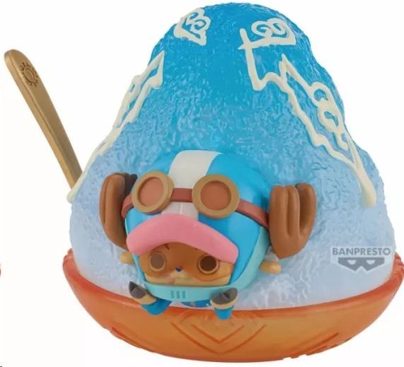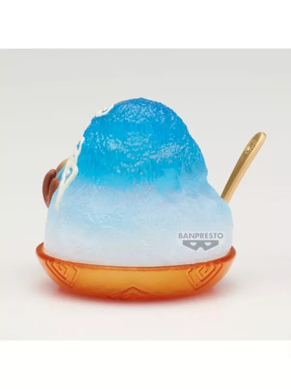 El nivel de detalle en la figura es impresionante, desde la textura realista del hielo hasta los finos trazos blancos que simulan la decoración del postre. Chopper luce con su característico traje y gafas, lo que le da un toque aún más especial. La pequeña cuchara en la parte trasera con el símbolo del barco Sunny añade un extra de creatividad y referencia al mundo de One Piece, haciendo que esta figura sea única dentro de la colección.