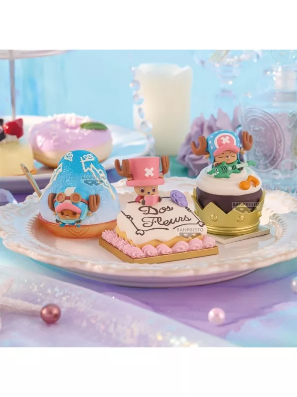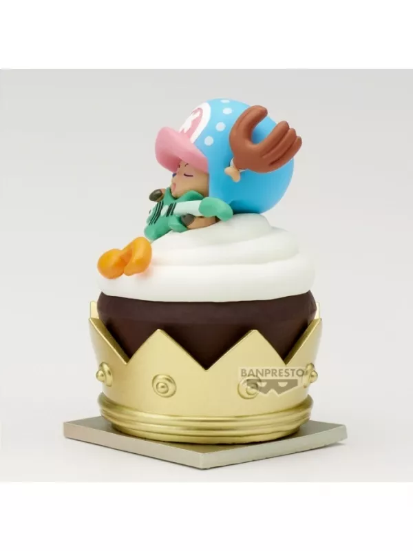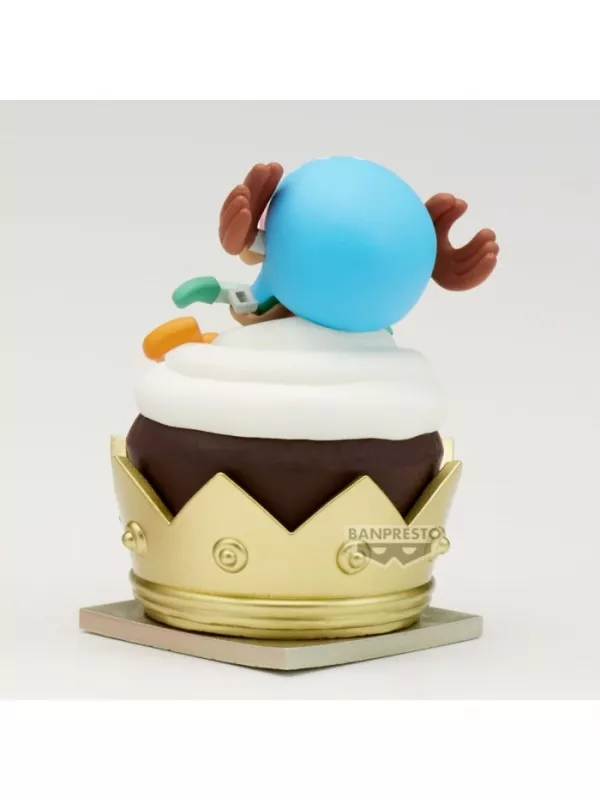 Cada detalle de esta figura está cuidadosamente diseñado, desde la textura cremosa de la cubierta hasta los pequeños adornos que realzan su estética. Chopper luce su clásico gorro azul de puntos y su carita soñadora, transmitiendo la esencia adorable del reno médico de los Sombrero de Paja. La base con forma de barril y la corona dorada aportan un toque único y elegante, haciendo que esta figura destaque en cualquier colección.