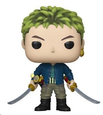 La figura Funko POP! Vinyl de Roronoa Zoro presenta al emblemático espadachín en el inconfundible estilo POP!, con una altura aproximada de 10 cm y un diseño que refleja su carácter serio y decidido desde el primer vistazo.