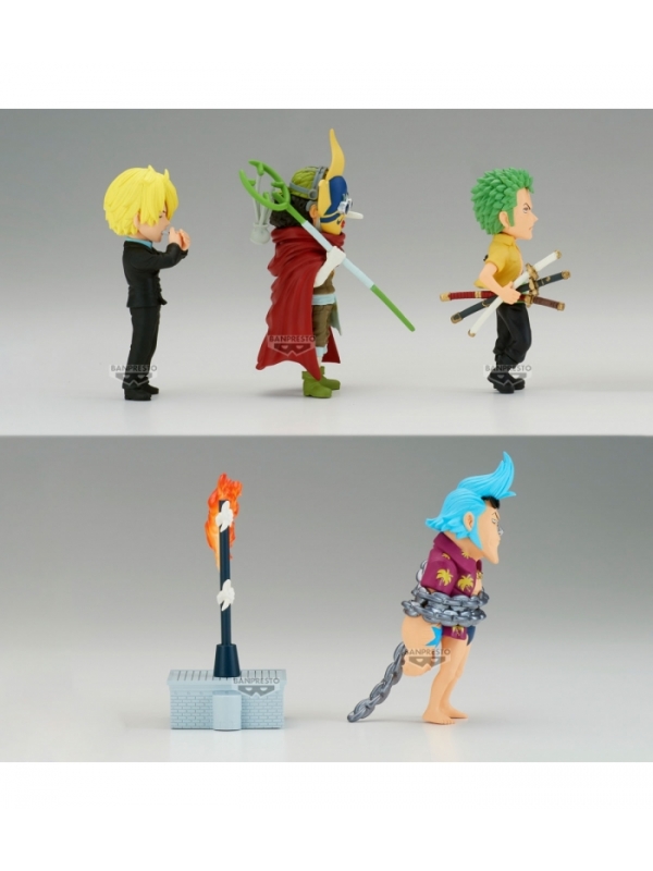Los acabados de alta calidad y los colores vibrantes hacen que cada figura cobre vida, destacando expresiones, vestimentas y accesorios emblemáticos. Desde la actitud despreocupada de Sanji hasta la determinación de Zoro, cada pieza transmite la personalidad única de los personajes. Además, el estandarte en llamas de Enies Lobby se convierte en un complemento imprescindible para cualquier fan que quiera revivir esta épica confrontación.