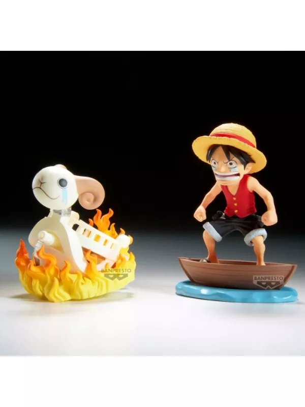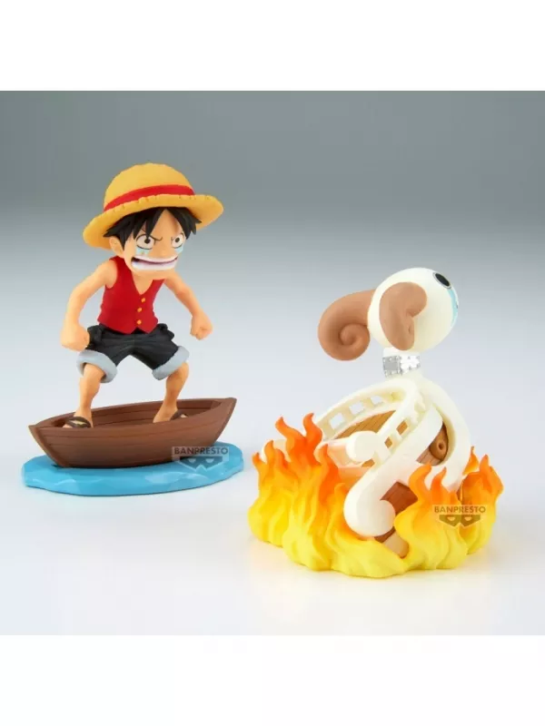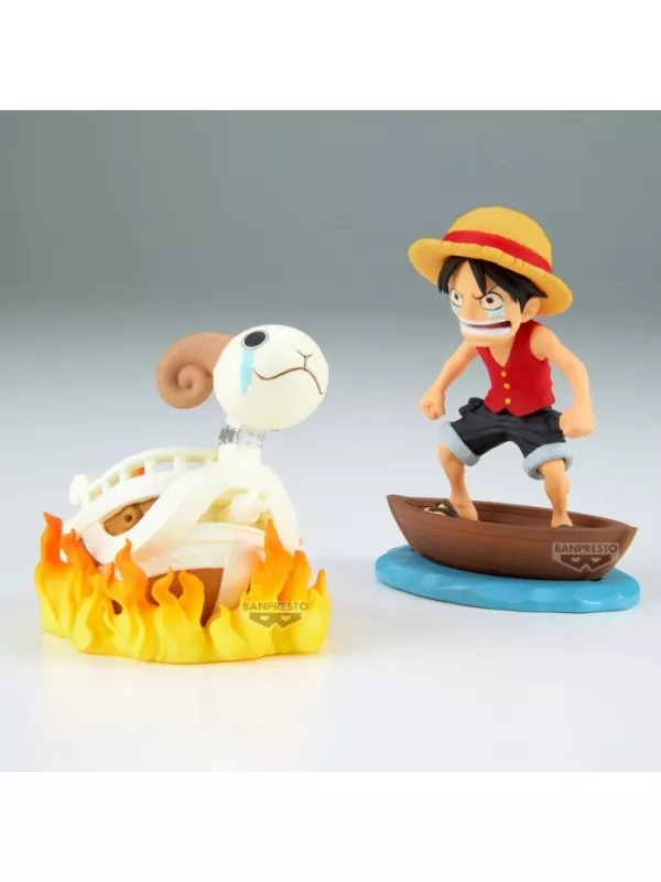 ONE PIECE WORLD COLLECTABLE FIGURE LOG STORIES FIGURA MONKEY D LUFFY & GOING MERRY 8 CM