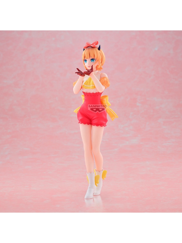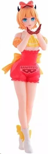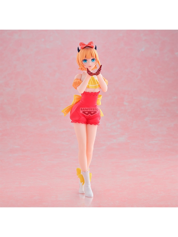 El nivel de detalle en la escultura resalta en cada pliegue de su atuendo y en la textura de su cabello, logrando una apariencia fiel a la serie. Sus ojos brillantes y su postura transmiten la alegría y confianza que la caracterizan, haciendo que esta figura sea una pieza imprescindible para los fans de Oshi no Ko. Su acabado de alta calidad resalta en cada ángulo, asegurando una presencia llamativa en cualquier colección.