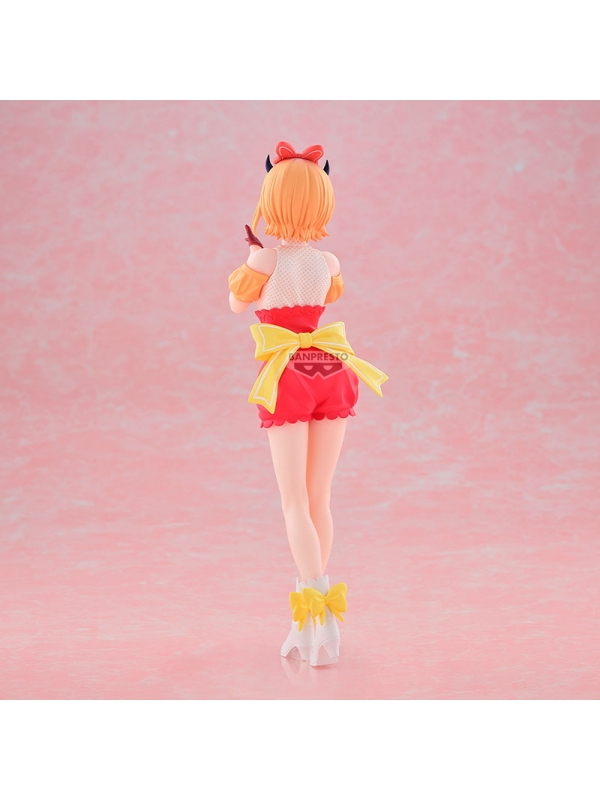 Memcho brilla con su carisma en esta figura de 18 cm de la línea Oshi no Ko, capturando su encanto en un diseño lleno de detalles. Con un outfit vibrante en tonos rojos y amarillos, su expresión juguetona y pose dinámica reflejan su espíritu enérgico. La diadema con cuernos y el lazo en su cabello le dan un toque distintivo que la hace destacar.