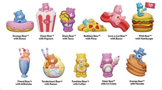 Entre los modelos puedes encontrar Grumpy Bear con donut o pancakes, Cheer Bear con helado o palomitas, Share Bear con tacos, Bedtime Bear con pizza, Love-a-Lot Bear con tocino, Tenderheart Bear con ramen, Funshine Bear con café y muchos más. ¡No se puede elegir personaje, pero todos son una monada! Ya disponible en la tienda online y en nuestras tiendas físicas Comic Stores.