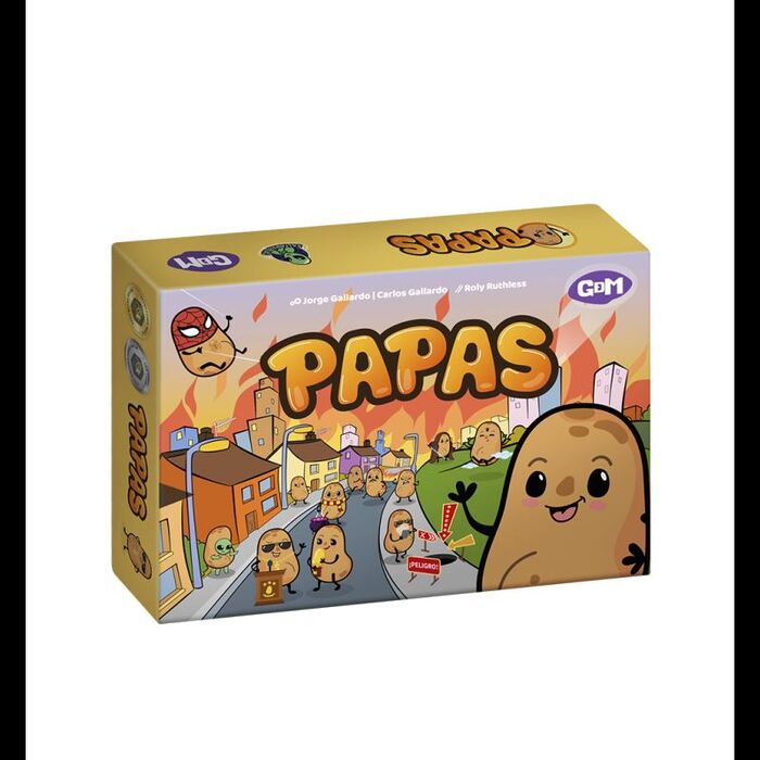 Papas es un entretenido juego de cartas familiar, en el cual tendrás que juntar la mayor cantidad de Papas de Oro. Para esto tendrás que jugar papas para atacar o defenderte.