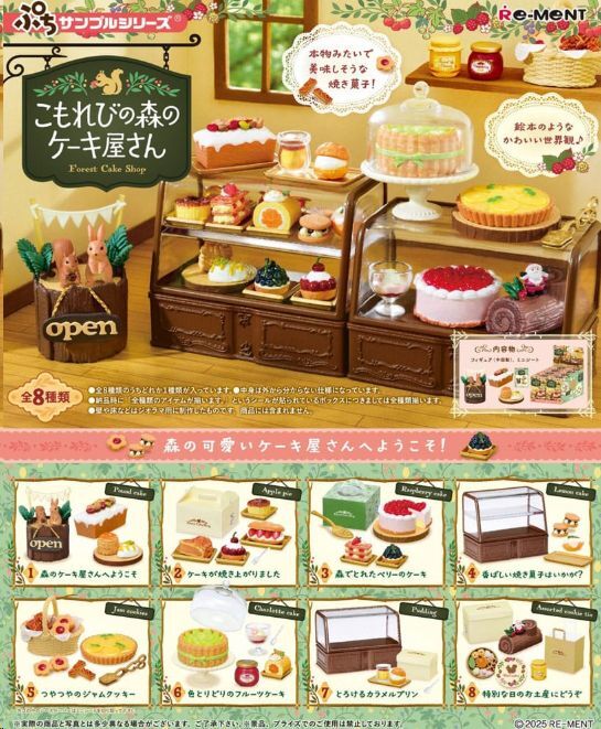 La colección se compone de: bizcocho, tarta de manzana, tarta de frambuesa, tarta de limón, galletas de mermelada, tarta Charlotte, pudín y una lata de galletas surtidas. Se venden por separado, y no se puede elegir el modelo, convirtiéndolas en un desafío divertido para los coleccionistas. ¡Añade un toque dulce y encantador a tu colección con estas miniaturas únicas!
