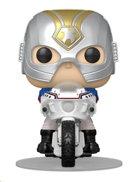 La línea POP! Rides de Funko presenta a Peacemaker en su versión Doppelganger, acompañado de su motocicleta, en una figura que combina acción y estilo con un diseño muy reconocible. Su característico casco plateado con detalles dorados y su postura sobre la moto transmiten toda la personalidad del personaje.