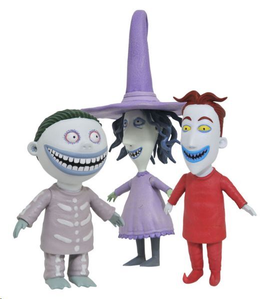 Diamond Select Toys presenta la serie 1 de algunas de las figuras articuladas de Nightmare before Christmas más populares de la línea. Están hechas en PVC y esculpidas por Cortes Studios. En esta ocasión se trata de las figuras de Lock, Shock y Barrel, de un tamaño aproximado de 15 cm.