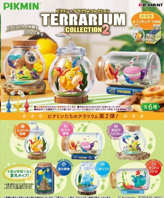 Sumérgete en el encantador mundo de Pikmin con la Terrarium Collection 2, una serie de minifiguras de PVC que recrean escenas icónicas de esta entrañable saga. Cada pieza, con un tamaño aproximado de 5 a 7 cm, está encapsulada en un terrario transparente que realza los detalles y colores de cada diorama, ofreciendo una presentación única y coleccionable.