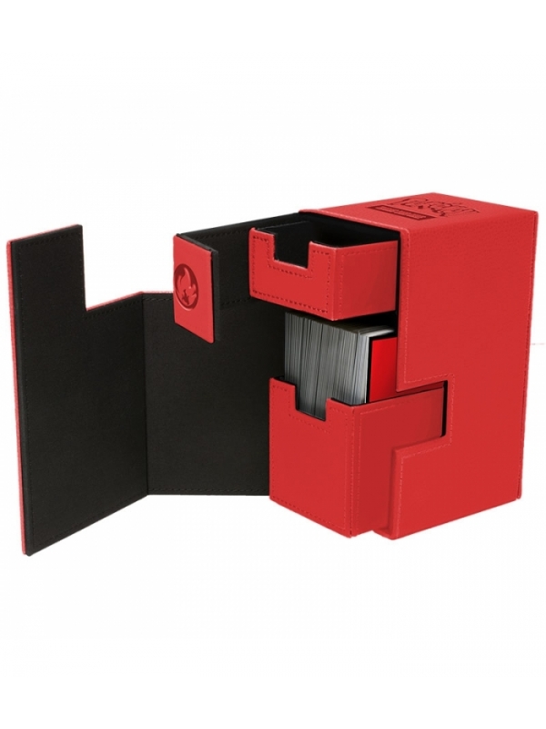 Con capacidad para almacenar hasta 100 cartas estándar con doble funda en fundas Ultra PRO Deck Protector, esta caja de baraja asegura que tus cartas estén siempre protegidas. Incluye ranuras para el pulgar que facilitan el acceso a tu mazo durante el juego y una tapa magnética con cierre seguro para mantener todo en su lugar. Además, cuenta con un compartimento inferior extraíble diseñado para almacenar datos, monedas y otros accesorios pequeños esenciales para tus partidas.