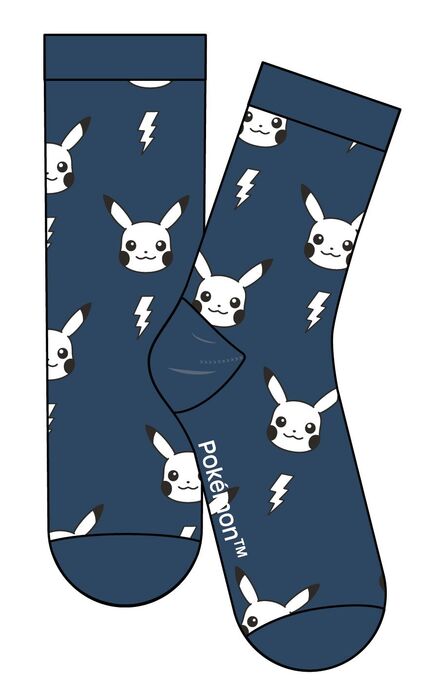 El rayo más adorable del universo Pokémon llega directo a tus pies! Estos calcetines azules de Pikachu en talla única están repletos de caritas felices del eléctrico compañero de Ash, acompañadas por pequeños rayos que hacen saltar la chispa del estilo friki.