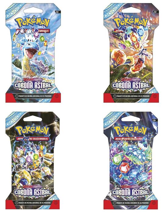 Cada sobre es una nueva oportunidad para obtener cartas sorprendentes y estratégicas que pueden cambiar el curso de tus batallas. ¡Colecciona, intercambia y juega con las cartas de la expansión Escarlata y Púrpura - Corona Astral y vive la aventura Pokémon al máximo!