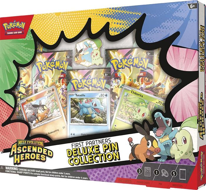 La colección Pokémon JCC Megaevolución Héroes Ascendentes Colección con Pin Deluxe Primeros Compañeros reúne todo lo necesario para ampliar tu experiencia en el Juego de Cartas Coleccionables Pokémon con un formato cuidado y pensado para disfrutar desde el primer momento. Una propuesta atractiva tanto para quienes juegan como para quienes disfrutan coleccionando.