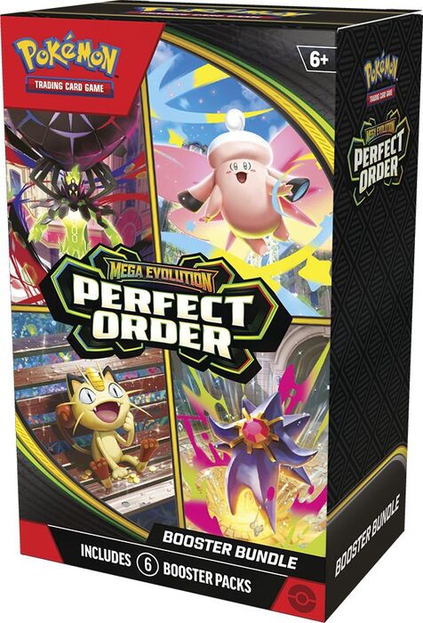 En su interior incluye 6 sobres de Pokémon TCG Cards, ideales para descubrir nuevas cartas, reforzar mazos existentes y explorar distintas combinaciones de juego. Cada sobre ofrece la emoción de encontrar cartas especiales y seguir ampliando la colección con contenido variado de la expansión Perfect Order.