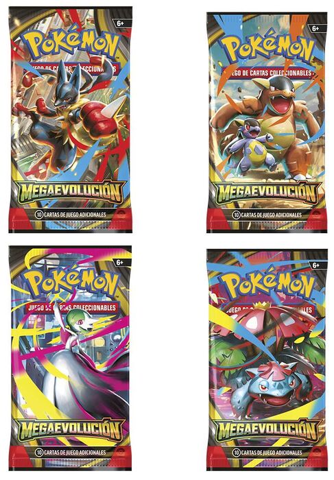 Cada sobre contiene 10 cartas adicionales de la colección Mega Evolución, entre las que puedes encontrar Pokémon ex, entrenadores, energías especiales y cartas espectaculares que pueden cambiar el rumbo de una partida. Esta expansión cuenta con más de 180 cartas, y cada sobre incluye una carta con código para el JCC Pokémon Live, ideal para quienes juegan tanto en mesa como en digital.