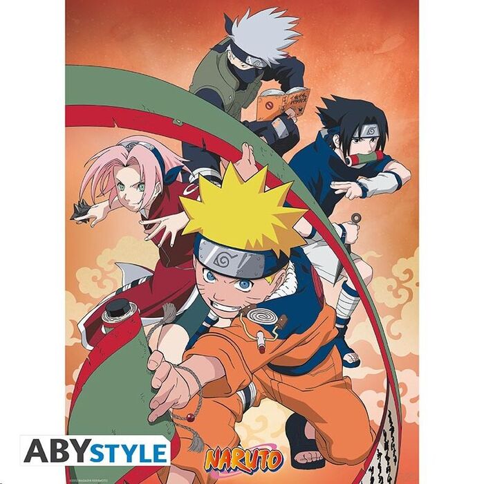 Ahora como parte del Equipo 7, Naruto está listo para llevar a cabo sus primeras misiones ninja con Sakura, Sasuke y Kakashi en este póster de ABYstyle.