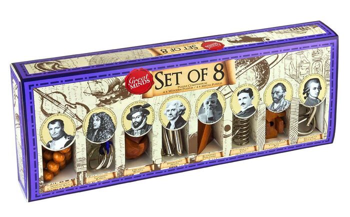 Celebrando los cerebros más brillantes y mejores de todo el mundo, estos rompecabezas de madera y metal de alta calidad son ganadores seguros. El gran atractivo de esta colección la mantiene como una de las más vendidas año tras año. Cada rompecabezas se ha combinado cuidadosamente con una gran mente relevante, con la caja que muestra una breve historia de esa persona famosa y cómo están conectados con el rompecabezas.