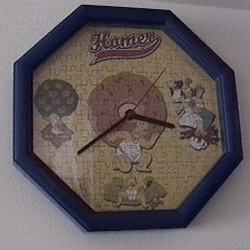 Puzzle/reloj de Los Simpsons que una vez armado funciona perfectamente. Tiene un tamaño de 30x30cm. El reloj funciona con pilas que no vienen incluídas.