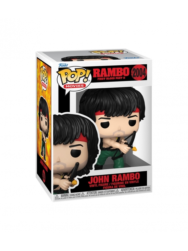 Figura de vinilo de la línea POP! que representa a John Rambo empuñando su icónica flecha explosiva, uno de los momentos más reconocibles del personaje dentro del cine de acción de Rambo. El diseño transmite su actitud combativa y su imagen clásica, con bandana, arco y una postura lista para el combate.
