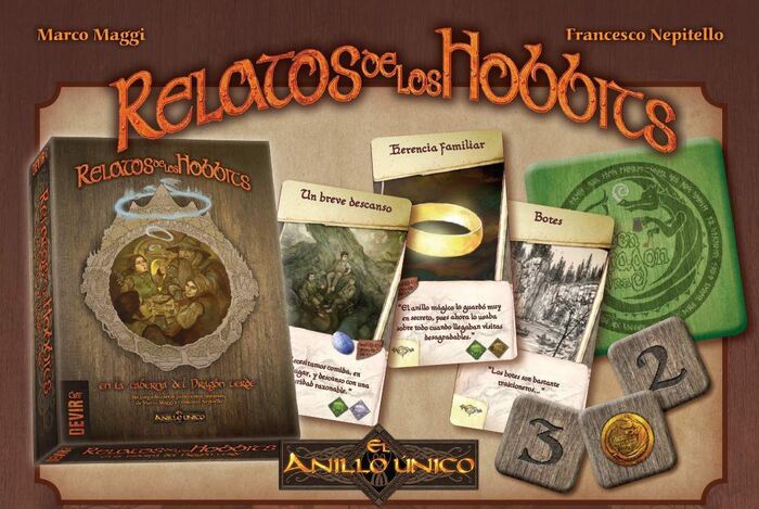 Relatos de los hobbits es un juego para 2-5 jugadores, diseñado por los premiados creadores Marco Maggi y Francesco Nepitello, autores del clásico juego Guerra del anillo y del juego de rol El anillo único.