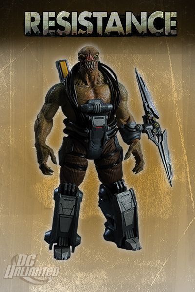 "Durante los años 30 la inteligencia americana consigue informes de bioexperimentación en Rusia que hablan de pueblos y ciudades asoladas. Se teme que los soviéticos hubieran desarrollado una terrible arma biológica ya que Rusia fue infectada por el desconocido virus ""Quimera"" y permaneció aislada durante más de diez años. En 1951 esta abominable especie lanzó un ataque a gran escala y conquistó Europa entera en una semana, diezmándola a su paso. Gran Bretaña es el último bastión de la resistencia, organizada en bases secretas. Los Estados Unidos deciden planear una ofensiva conjunta y envían sus fuerzas a unirse a los británicos. Un ataque sorpresa imposibilita el encuentro, quedando los marines a merced de un enemigo desconocido... ""Resistance"" es un ""shooter"" disponible para la plataforma Playstation 3 y DC Direct lanza al mercado la primera serie de figuras que incluye los personajes de Nathan Hale, Ravager, Steelhead, y Quimera (híbrido avanzado). Las figuras miden aproximadamente 18 cm., están fabricadas en PVC y vienen presentadas en blíster."
