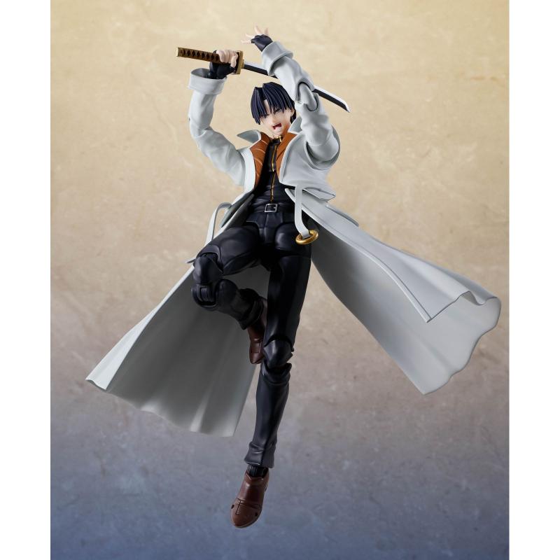Tamashii Nations orgullosamente presenta dentro de la colección S.H. Figuarts la figura de Aoshi Shinomori, un personaje clave del aclamado anime "Rurouni Kenshin". Esta figura articulada tiene una altura de 16,5 cm y captura con gran fidelidad el aspecto distintivo de Aoshi, destacando su mirada intensa y su vestimenta característica, que incluye un largo abrigo blanco y un atuendo de combate.