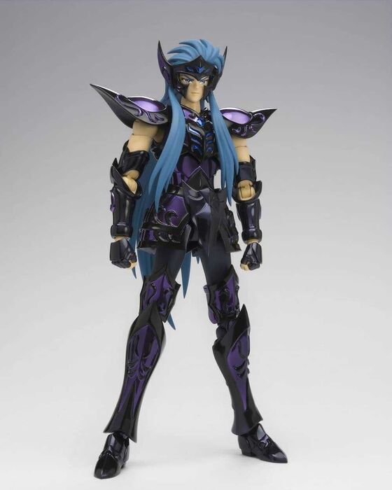 Bandai dentro de la serie Myth Cloth Ex nos ofrece la figura de Camus el Caballero de Oro de Acuario en su versión surplice de los espectros de Hades. Una figura de 18 cm completamente articulada que incluye complementos y piezas de armadura, así como 5x caras intercambiables, 4x manos (D/I), 1Xset de manos juntas, 1x set de pelo opcional, 1x set de expresiones del Lamento y piezas para montar el objeto de la armadura de Capricornio oscura.