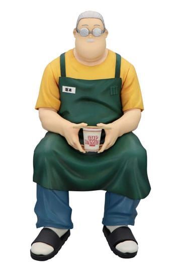 Fabricada con materiales de alta calidad, la estatua destaca por sus acabados realistas, desde las texturas de la ropa hasta la expresión serena de Sakamoto, sosteniendo un emblemático vaso de ramen instantáneo. Su tamaño compacto la convierte en una pieza ideal para cualquier colección, siendo perfecta para exhibir en escritorios o vitrinas.