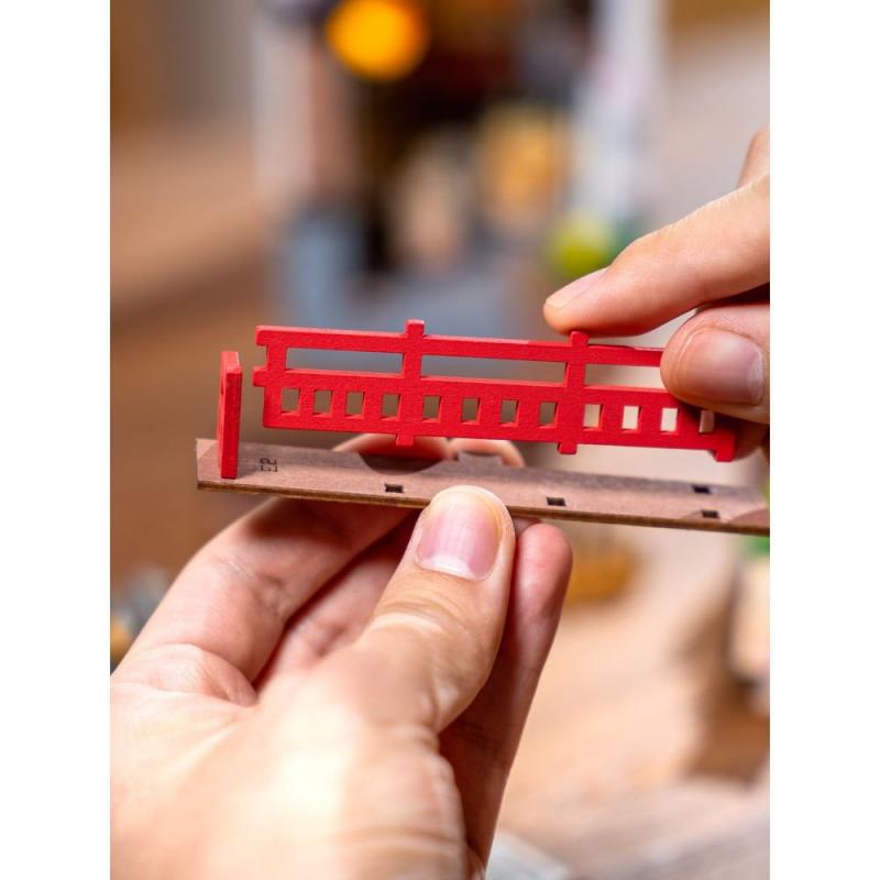 Los kits incluyen piezas de madera de alta calidad, todas precortadas y prepintadas, listas para montar sin necesidad de herramientas complicadas. Solo necesitas seguir las instrucciones paso a paso para dar vida a escenarios cautivadores: desde callejones con farolas y librerías escondidas, hasta talleres secretos o bibliotecas ocultas entre páginas.