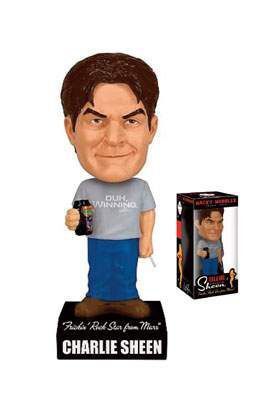 Figura de Charlie Sheen, con cigarro y cerveza, con sonido de frases como "I am on a drug; it's called Charlie Sheen!", "Winner, winner, chicken dinner" I don't think so. Winner, winner, SHEEN dinner!" y "Duh, winning!". Cabezón de 15 cm con sonido.