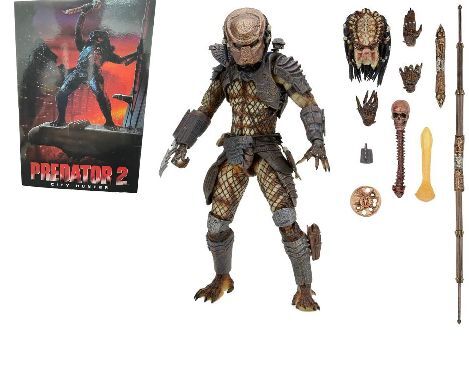 NECA presenta la versión Ultimate del Predator City Hunter. Se trata de la versión méjorada con las últimas técnicas de esculpido y pintado de un clásico. Nuevos puntos de articulación en biceps, hombros y codos. Incluye cabeza alternativa sin casco y 3x manos extra, armas, cráneo y columna vertebral humanos.