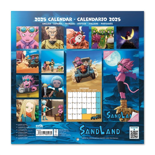 https://comicstores.es/producto/sand-land-calendario-2025-30x30-cm_578112578112SAND LAND CALENDARIO 2025 30X30 CMDe Enero de 2025 a Diciembre 2025. Mide 29,5 x 29,5 cm, con encuadernación grapada. Contiene 12 imágenes y un póster en su interior. Incluye agujero de 5 mm para colgar en la pared. Las cubiertas son de papel de 250 g/m² estucado mate y laminado, el interior es de papel de 150 g/m² estucado mate. Idiomas: inglés, español, francés, italiano, alemán y portugués. Se presenta en un sobre de cartulina gráfica de 300 g/m² de 30 x 30 cm. https://comicstores.es/imagenes/8435747/843574780563.JPG8.7610.95202.19
