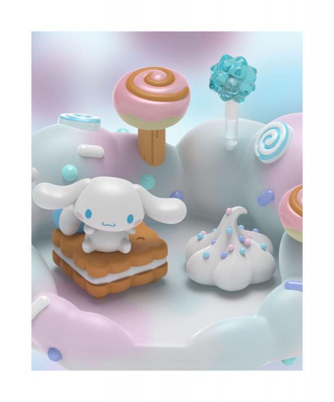La figura de Cinnamoroll de la colección Sanrio Kandyland es un encanto lleno de dulzura. Con su acabado transparente y brillante, nos muestra al adorable perrito blanco descansando entre nubes, rodeado de colores pastel y detalles de golosinas que parecen sacados de un sueño.