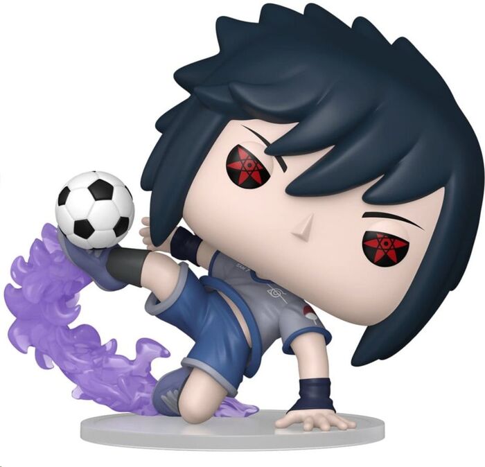 La figura Sasuke Uchiha (Soccer) en formato Funko POP muestra al emblemático rival de Naruto en una versión alternativa que lo presenta practicando fútbol, combinando su carácter serio y decidido con un enfoque deportivo poco habitual.