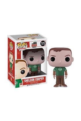 Sheldon Cooper con su inconfundible camiseta de Green Lantern, de la serie Big Bang Theory en versión BOOBLE POP. Figura de 10cm. De la divertida y prestigiosa marca FUNKO.
