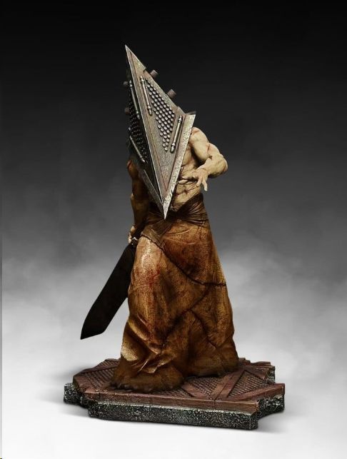 Esta imponente estatua a escala 1/4 recrea con gran fidelidad a Pyramid Head, una de las figuras más perturbadoras y reconocibles del universo Silent Hill. Su presencia transmite toda la tensión psicológica y la atmósfera opresiva que definen a la saga, convirtiéndola en una pieza de fuerte impacto visual para cualquier espacio.