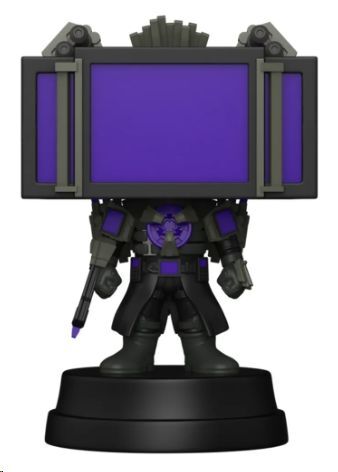 Figura Skibidi Toilet Super Sized POP! Vinyl Titan TV Man (SFX) de 10 cm que destaca por su imponente presencia y su diseño futurista, con una gran pantalla frontal en tono púrpura que se convierte en el elemento protagonista de la pieza.