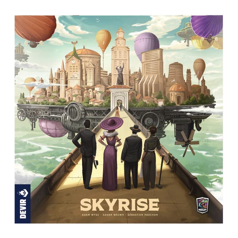 Diseñado por Adam Wyse, Gavan Brown y Sébastien Pauchon e ilustrado por Andrew Bosley, Skyrise ofrece partidas para parejas o grupos de hasta 4 personas, a partir de 14 años, de entre 30 y 75 minutos de duración. A través de mecánicas de mayorías, subastas y pujas o set collection, Skyrise nos reta a conseguir la mayor cantidad posible de puntos de prestigio.