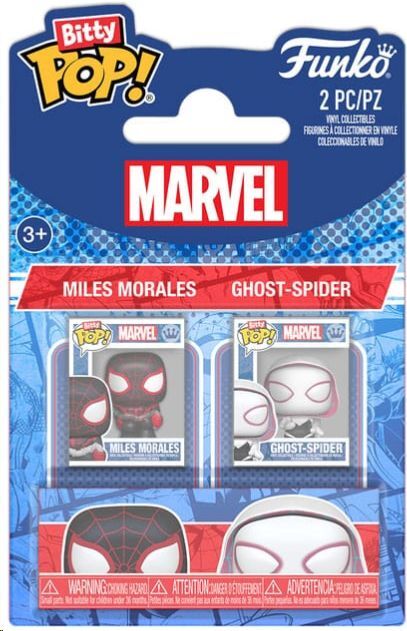 Este pack de Bitty Pop! de Marvel presenta a dos de los héroes más populares del Spider-Verso en formato miniatura de 2,5 cm, ideal para coleccionistas que buscan figuras diferentes y llenas de estilo.