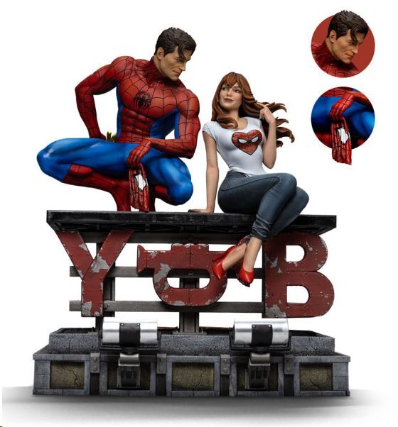 Peter y MJ aparecen sobre una cornisa, en una pose llena de ternura y acción, con detalles impresionantes tanto en los trajes como en el entorno urbano. Además, incluye cabeza y mano extra para variar la exposición del trepamuros a tu gusto.
