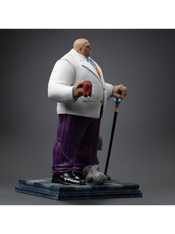 La figura de Kingpin de Marvel de Iron Studios representa a uno de los villanos más imponentes del universo Marvel con una presencia que no pasa desapercibida. Su postura firme y dominante refleja el poder y la influencia de este icónico personaje, conocido por su inteligencia y su control absoluto del crimen.