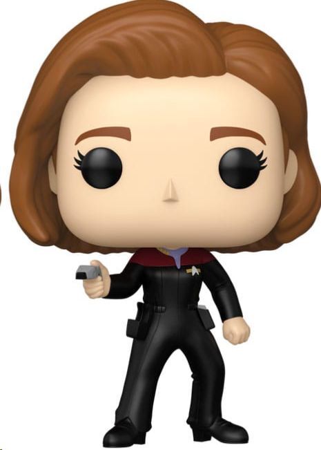 Esta figura Pop! representa a la capitana Kathryn Janeway, una de las líderes más icónicas del universo Star Trek. Su uniforme negro con detalles en rojo y el emblema de la Flota Estelar destacan claramente su autoridad y rol como comandante del Voyager.