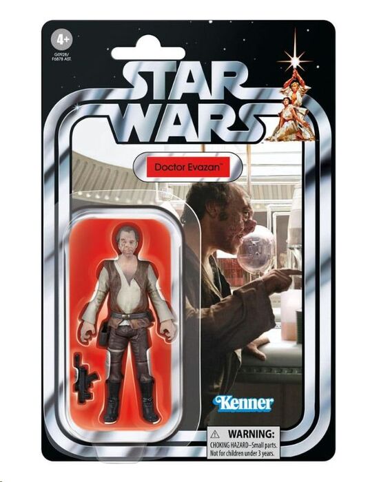 Hasbro presenta, dentro de la aclamada Star Wars The Vintage Collection, la figura del infame Doctor Cornelius Evazan, tal como aparece en la película original Star Wars: A New Hope. Esta figura articulada de 9,5 cm de altura reproduce con fidelidad todos los detalles del contrabandista y criminal galáctico, célebre por su amenazante encuentro con Luke Skywalker en la cantina de Mos Eisley.