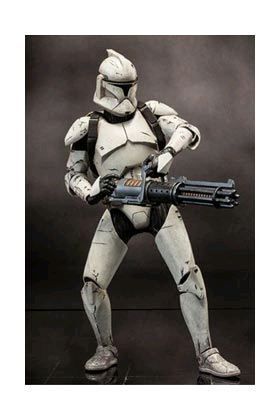 Sideshow presenta el Clone Trooper veterano, con su armadura desgastada y dañada, curtido en el campo de batalla y superviviente de incontables combates. Esta figura articulada mide 30 cm e incluye partes intercambiables con yelmos de la fase 1 y la fase 2 y un arsenal completo de armas.