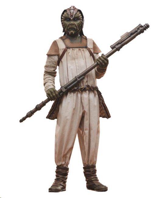 Revive la épica de Star Wars: Episodio VI El Retorno del Jedi con esta figura a escala 1/6 de Klaatu, el leal guardia de Jabba el Hutt. Con una altura aproximada de 32 cm, presenta un nivel de detalle excepcional que captura su característico aspecto alienígena.