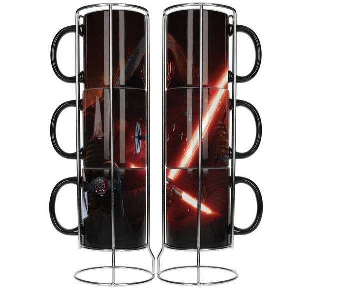 Set de tres tazas de cerámica apilables, con un espectacular diseño basado en la nueva entrega de la saga "Star Wars" ("The Force Awakens").