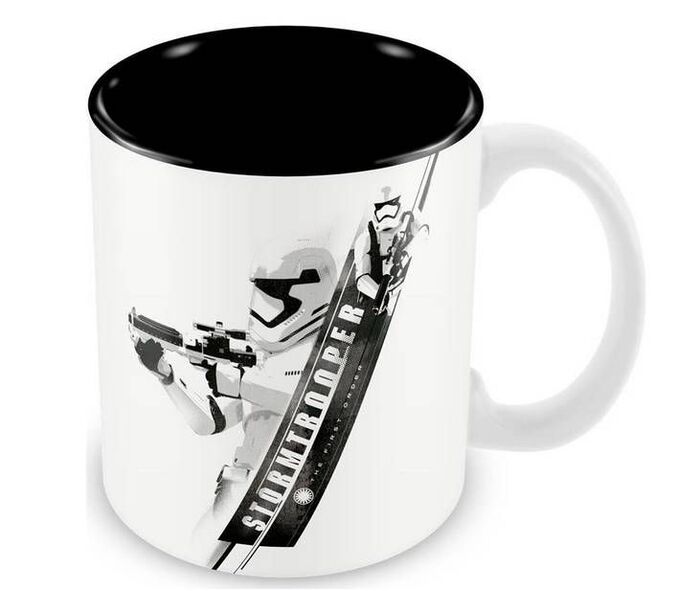 SD Toys presenta las tazas de cerámica basadas en la nueva entrega de la saga "Star Wars: The Force Awakens", ilustradas con imágenes del film y de sus principales personajes. En este modelo se muestra a uno de los nuevos stormtroopers con una pistola blaster. El interior de la taza es de color negro.